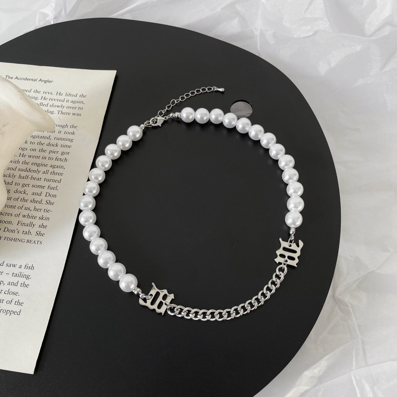 真珠のアルファベットのネックレスの女性insヒップホップの冷たい風の鎖の鎖の2021の新型の男女の首の鎖は鎖の鎖を飾ります。