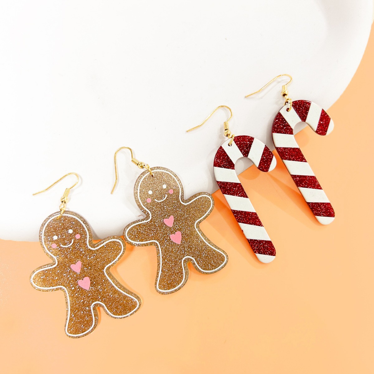 欧米のクロスボーダーの商品の供給源の漫画のクリスマスのかわいい姜パイ人のイヤリングのスパンコールの赤いキャンディーの杖のイヤリングの女性