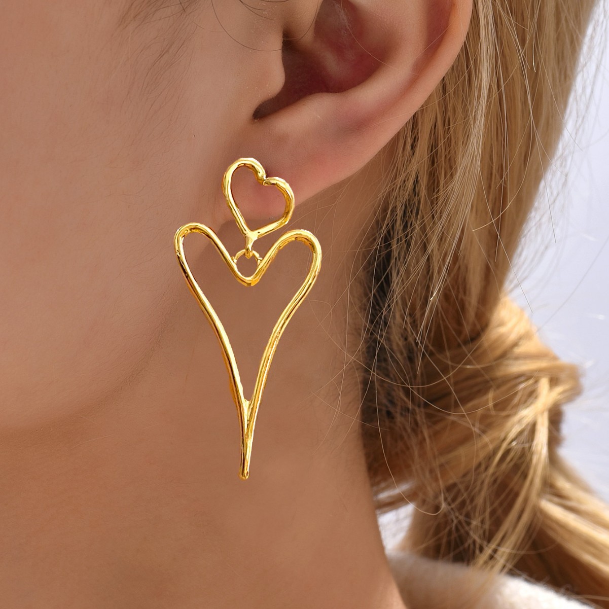 欧米の国境を越えた金属ファッションのシンプルなレトロなハート型イヤリングの透かし彫りサイズの愛のイヤリングバレンタインデー
