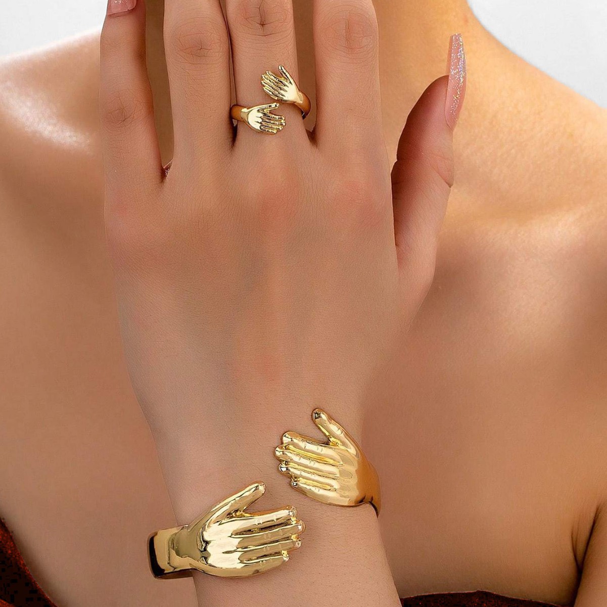 欧米のクロスボーダーの光面の幾何学的個性的な金属のブレスレットの透かし彫りのデザイン感の指輪のセットは軽くて豪華で高級感があります。