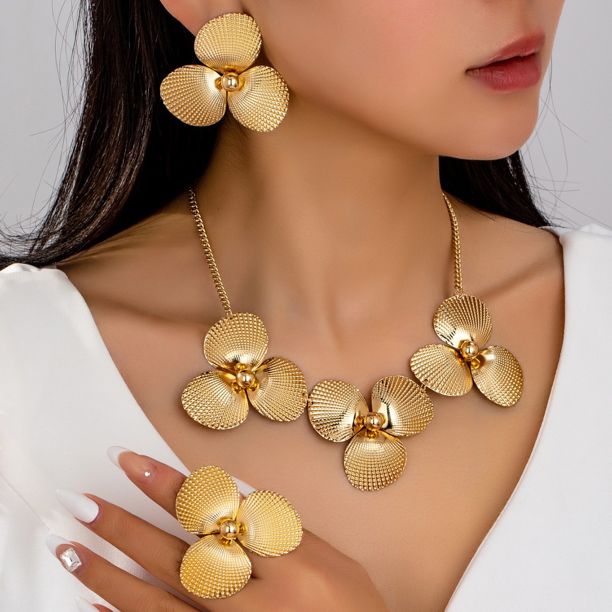 欧米の国境を越えた商品の供給源は簡単で、立体的な花のイヤリングのネックレスの指輪のセットの女性のファッションは個性的な装飾品に似合います。