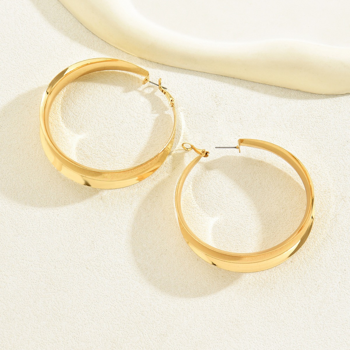 欧米の金色の銀色のしわの丸いイヤリングの木目はシンプルで幾何学的なファッションモデルの高級感のある女性の耳飾りです。