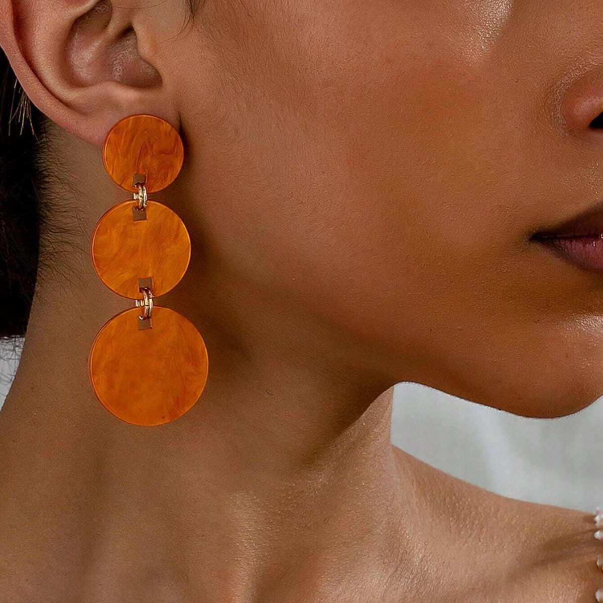 欧米の対外貿易は誇張して個性のファッションの気質のイヤリングのアクリルの丸い切れの蜂蜜の色の樹脂の丸いイヤリングの女性を誇張します。