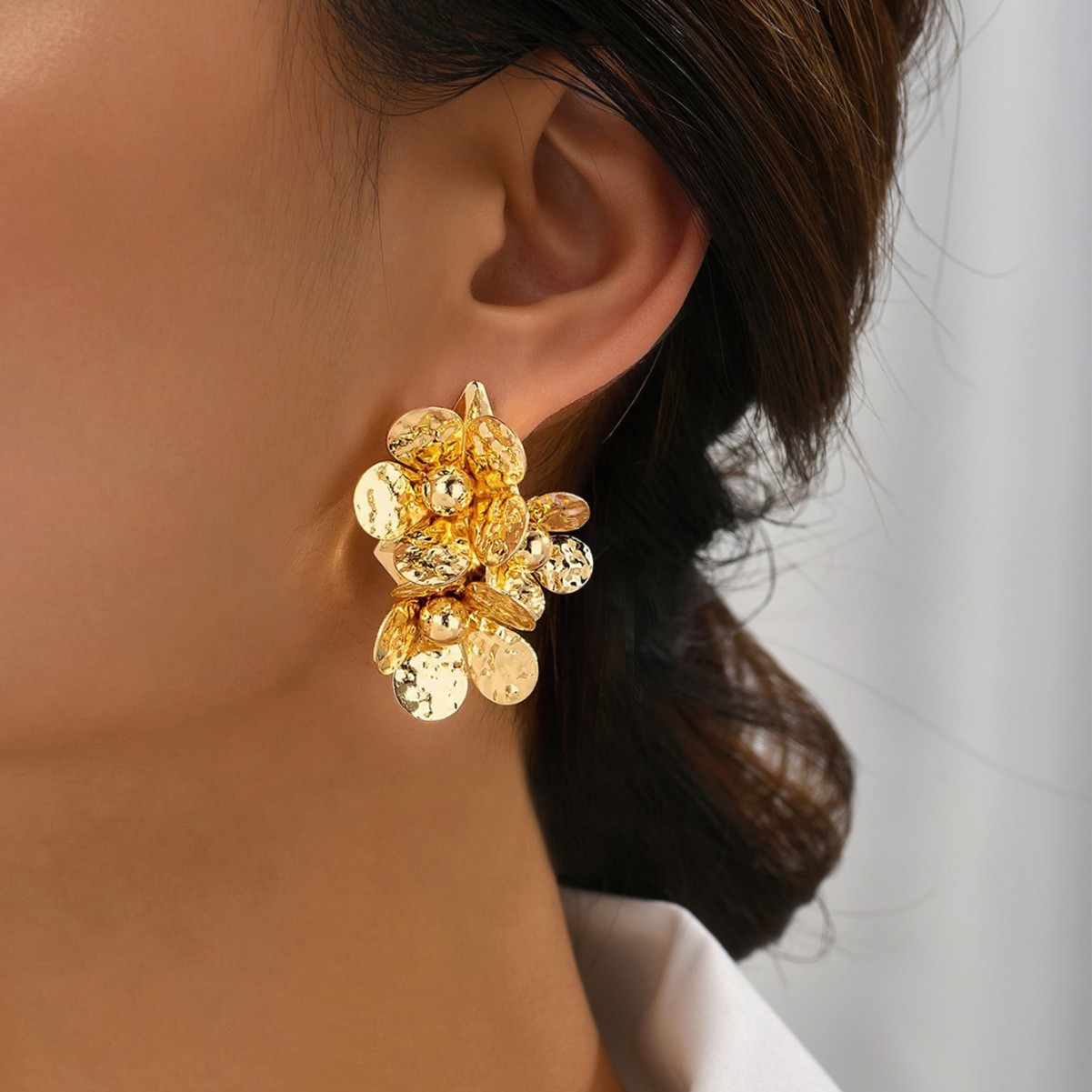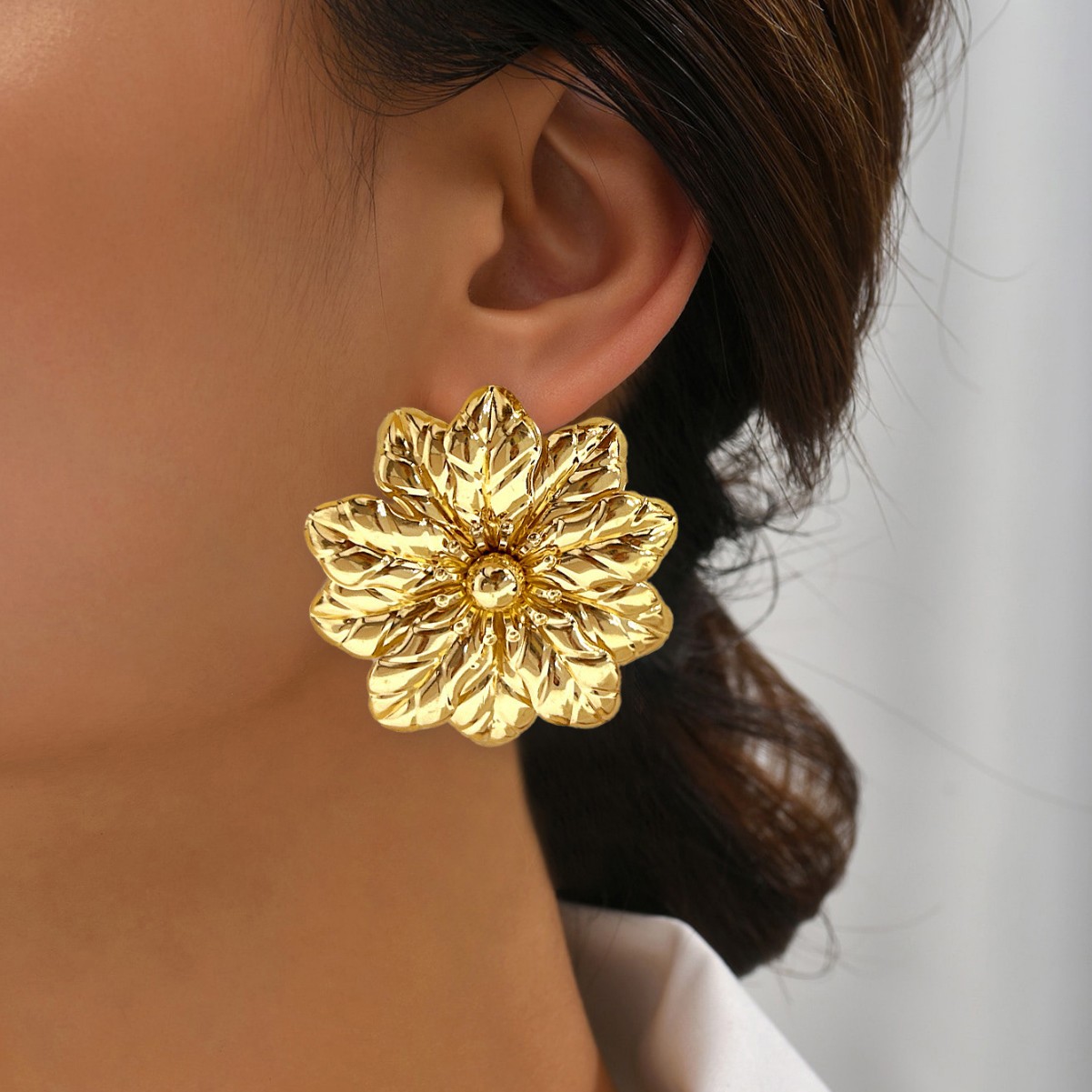 欧米の国境を越えた金属の小衆は大花のピアスを誇張してレトロな女性の街頭ファッションイヤリングの高級感を持っている