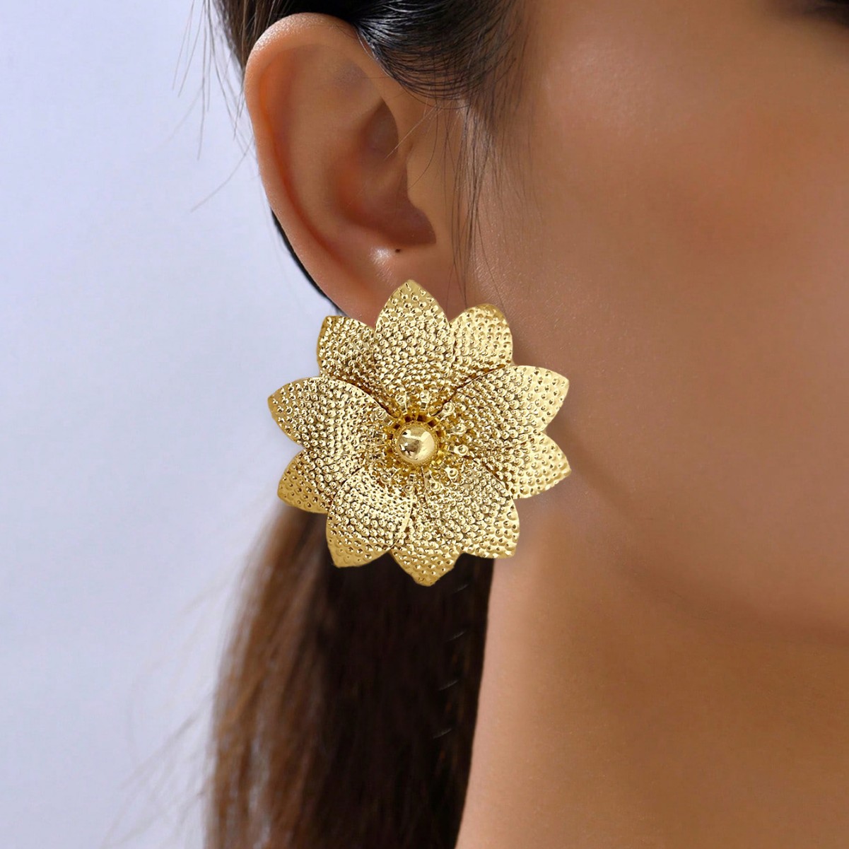 ヨーロッパとアメリカのクロスボーダーサプライメタルファッション幾何学的なひまわりイヤリング中空フラワーイヤリングニッチスイートクールホットガール