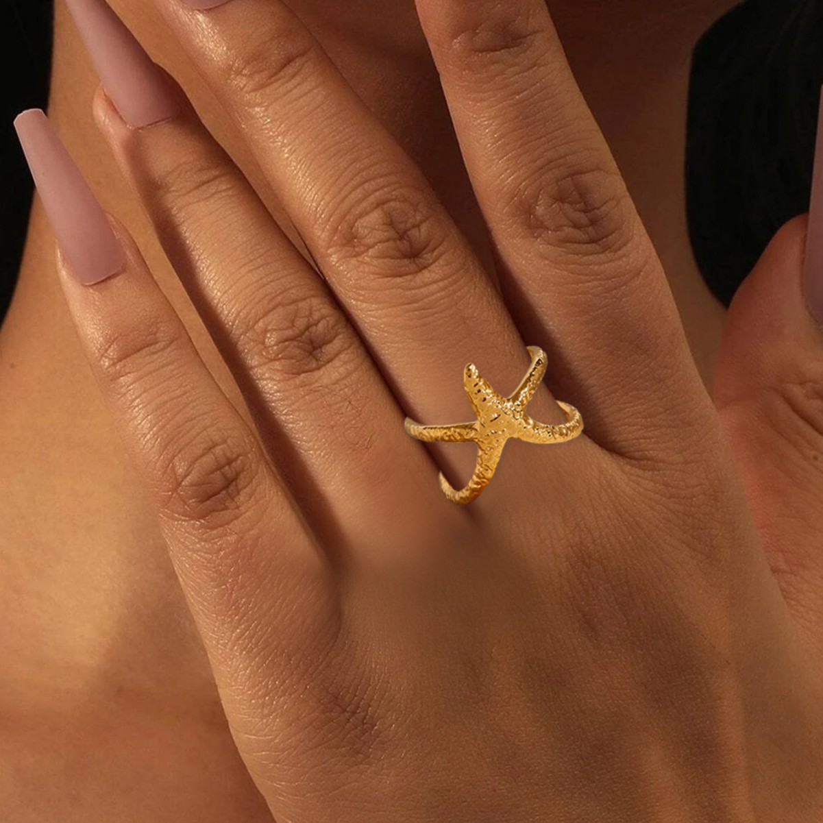 ヨーロッパとアメリカの国境を越えた供給海洋生物リングヒトデの形のリング開口部調節可能なニッチホリデーハンドジュエリー女性用