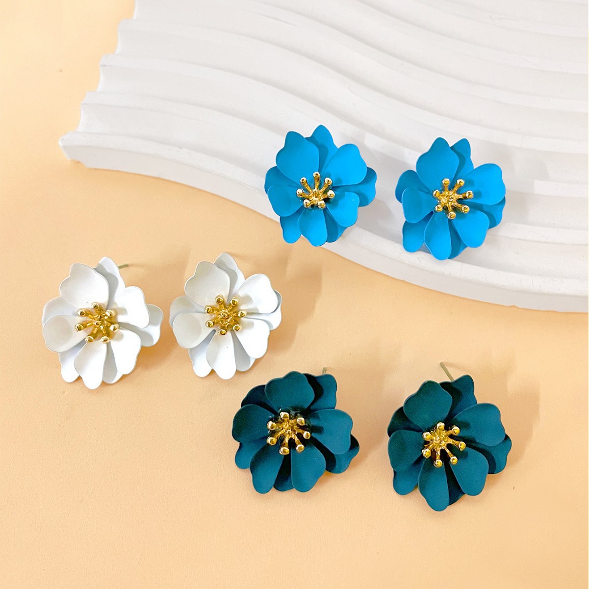 ヨーロッパとアメリカの国境を越えた供給ドーパミンカラーフラワーイヤリング小さな新鮮なヒョナスタイル甘いイヤリング女性のための多用途イヤリング