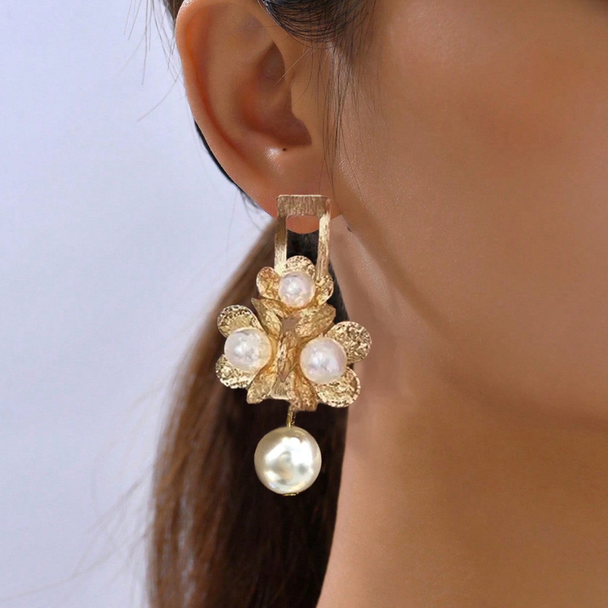 クロスボーダーサプライメタル気質イミテーションパールイヤリングニッチデザインジュエリーフラワータッセルイヤリングハイエンドイヤリング