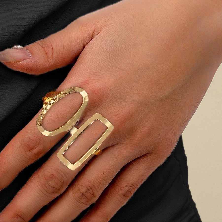 欧米の国境を越えたソースの幾何学的な四角形の透かし彫りの指輪の十字の双Vの指輪の開口部はスーツの女性のパンクを調節することができます。
