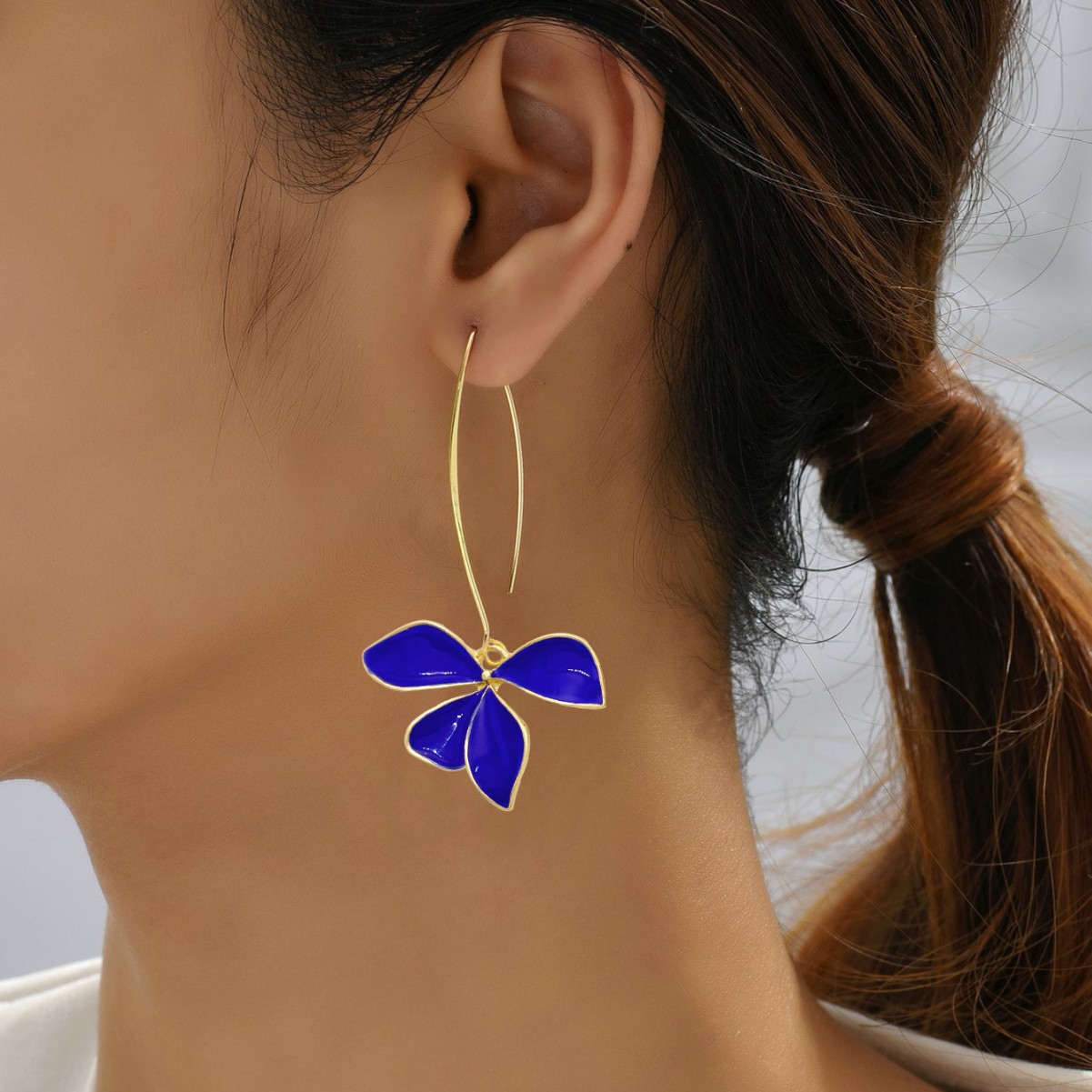 欧米の国境を越えたソースラインの幾何学的な青い花の耳のイヤリングの女性の小さい清新な休暇のファッションの耳飾り