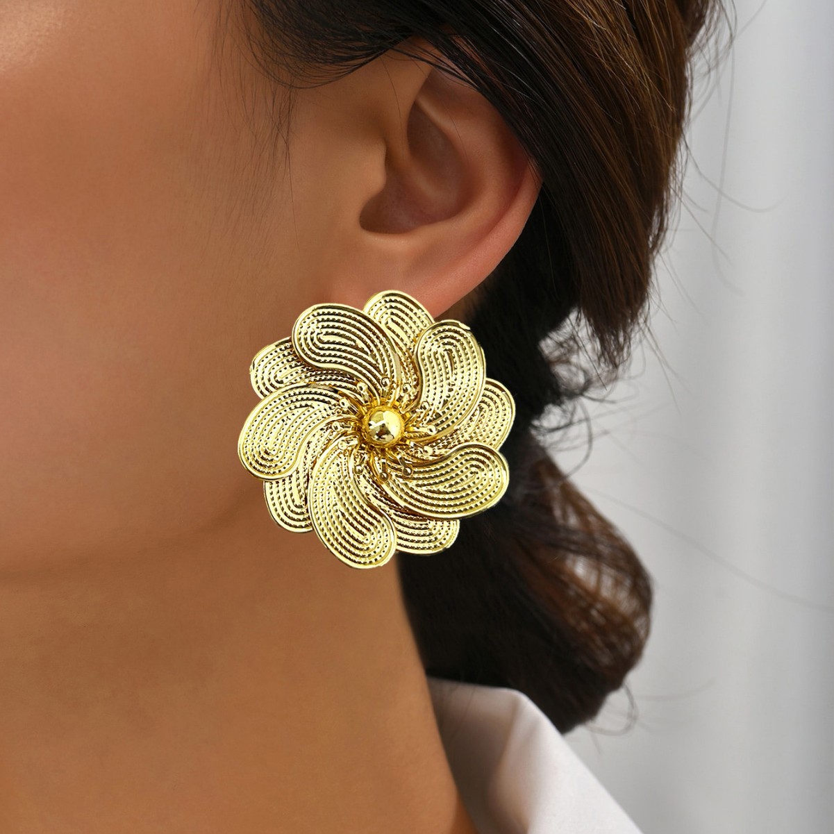 ヨーロッパとアメリカのクロスボーダーサプライレトロな気質フレンチイヤリングスパイラル大花イヤリングレディースストリートニッチイヤリング
