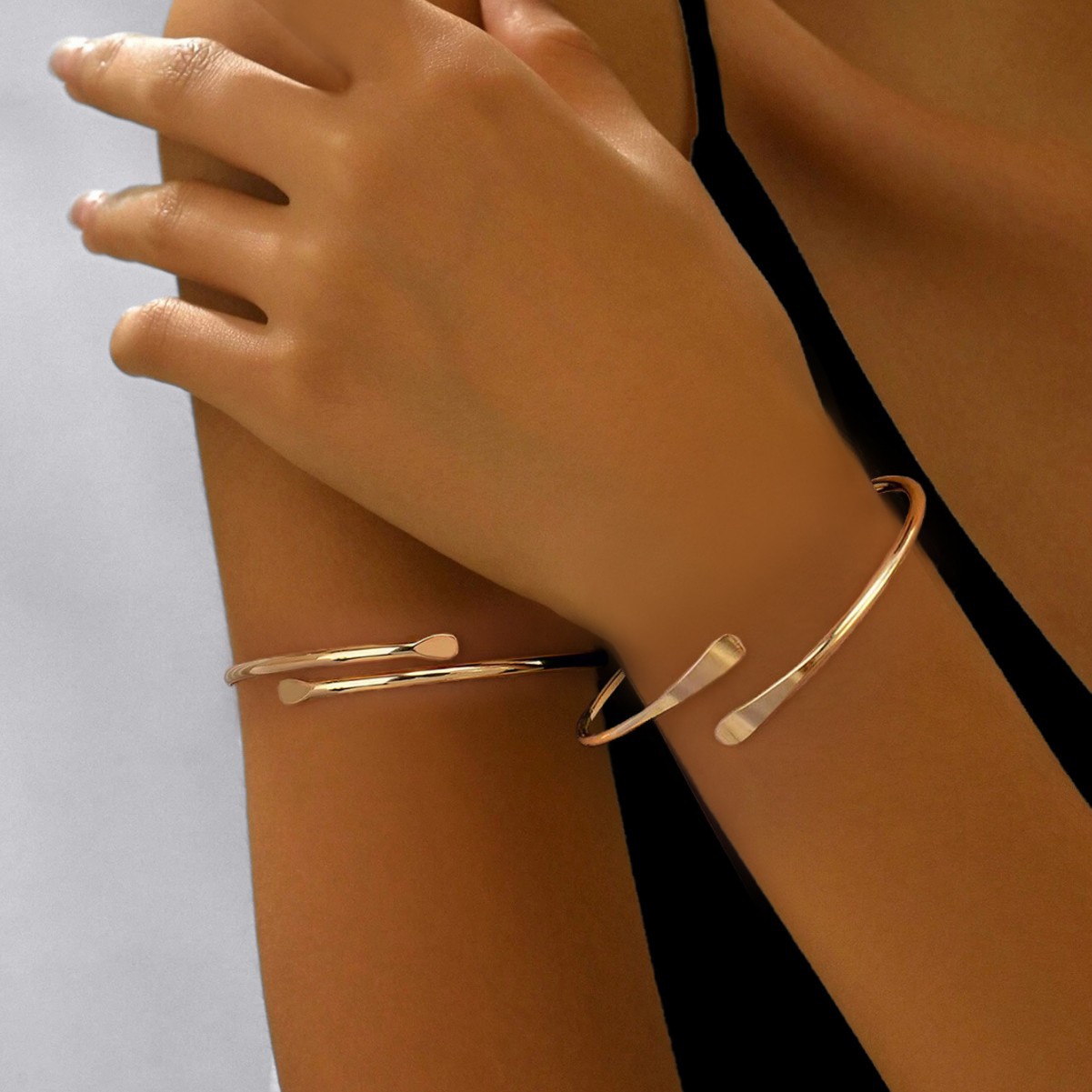 ヨーロッパとアメリカのクロスボーダーサプライ単層フラットアームバンドブレスレットセット開口部調節可能な女性のニッチシンプルなジュエリー