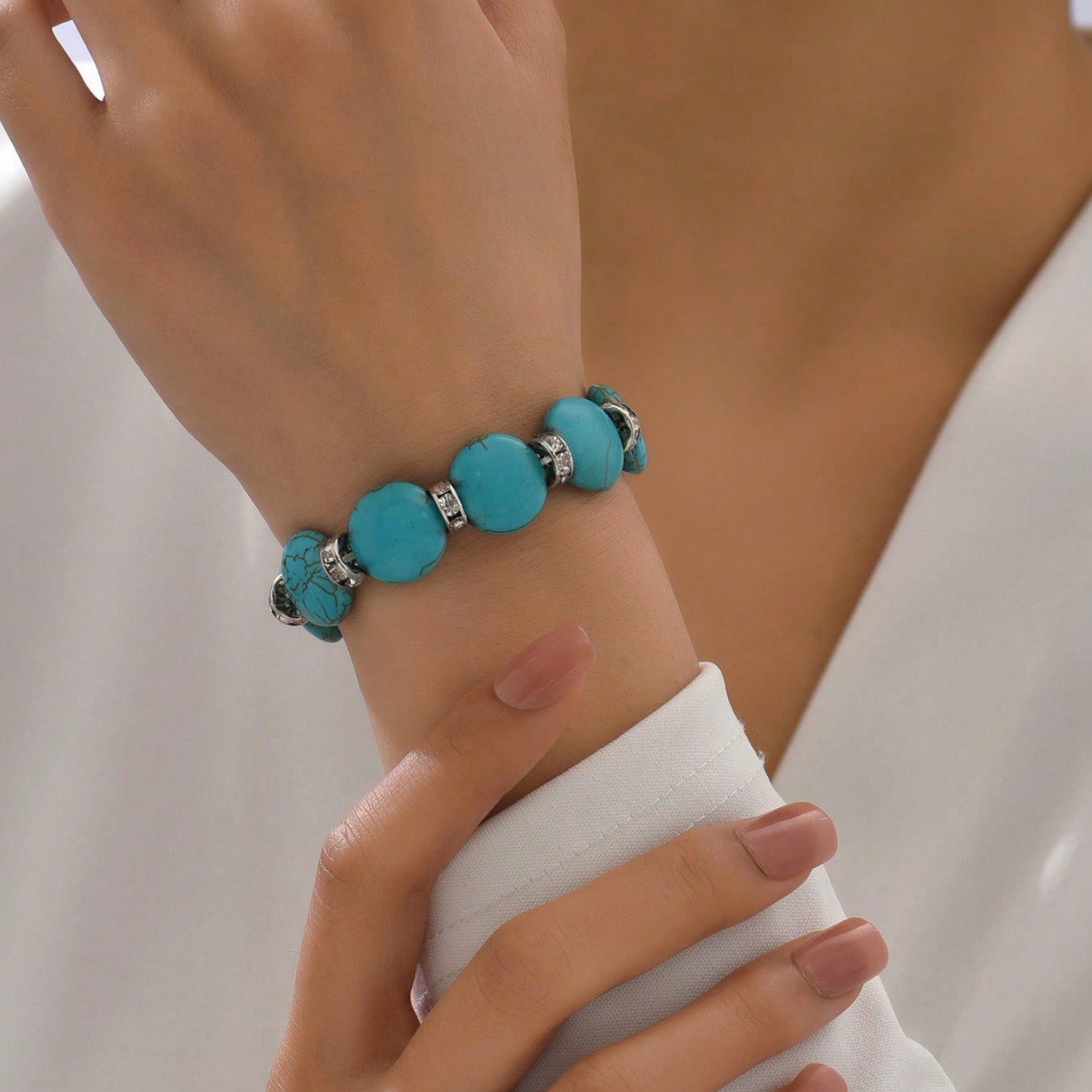 ヨーロッパとアメリカのクロスボーダーサプライレトロ模造ターコイズブレスレット多用途ニッチファッションハンドジュエリーエスニックヴィンテージジュエリー女性用