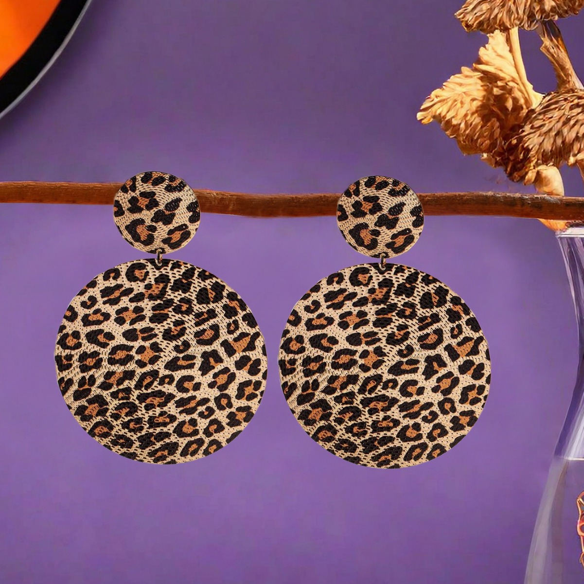 欧米の国境を越えたソースの幾何学模様のレトロなヒョウ柄のイヤリングは大げさな円形のイヤリングを誇張しています。