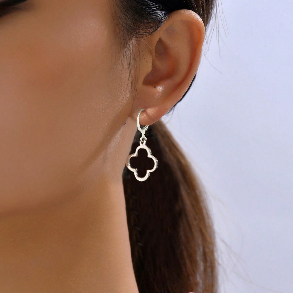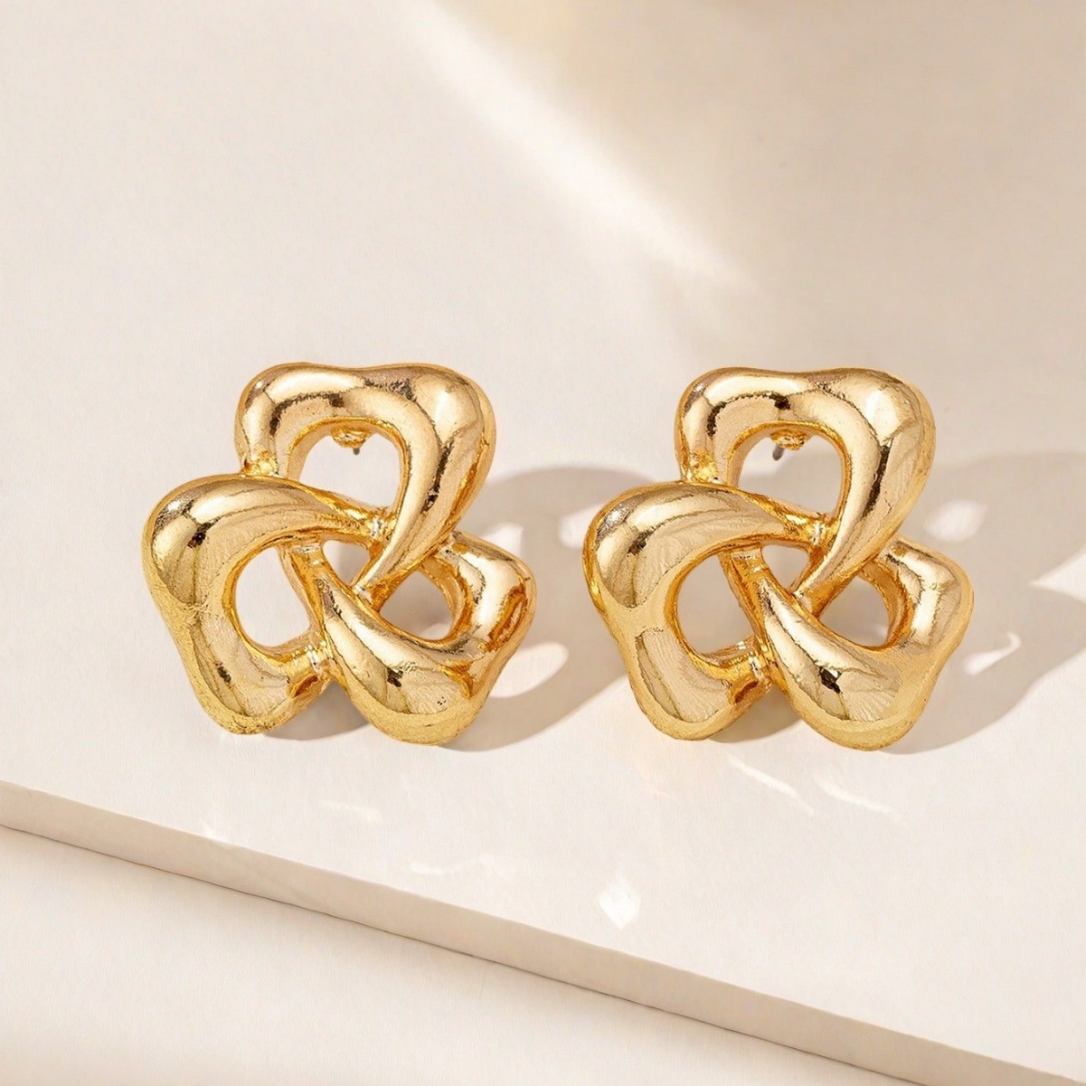欧米の越境商品の透かし彫りの三葉の花のイヤリングは幸運な花のピアスの個性の小さい大衆のinsを巻いて簡単に耳飾りをします。