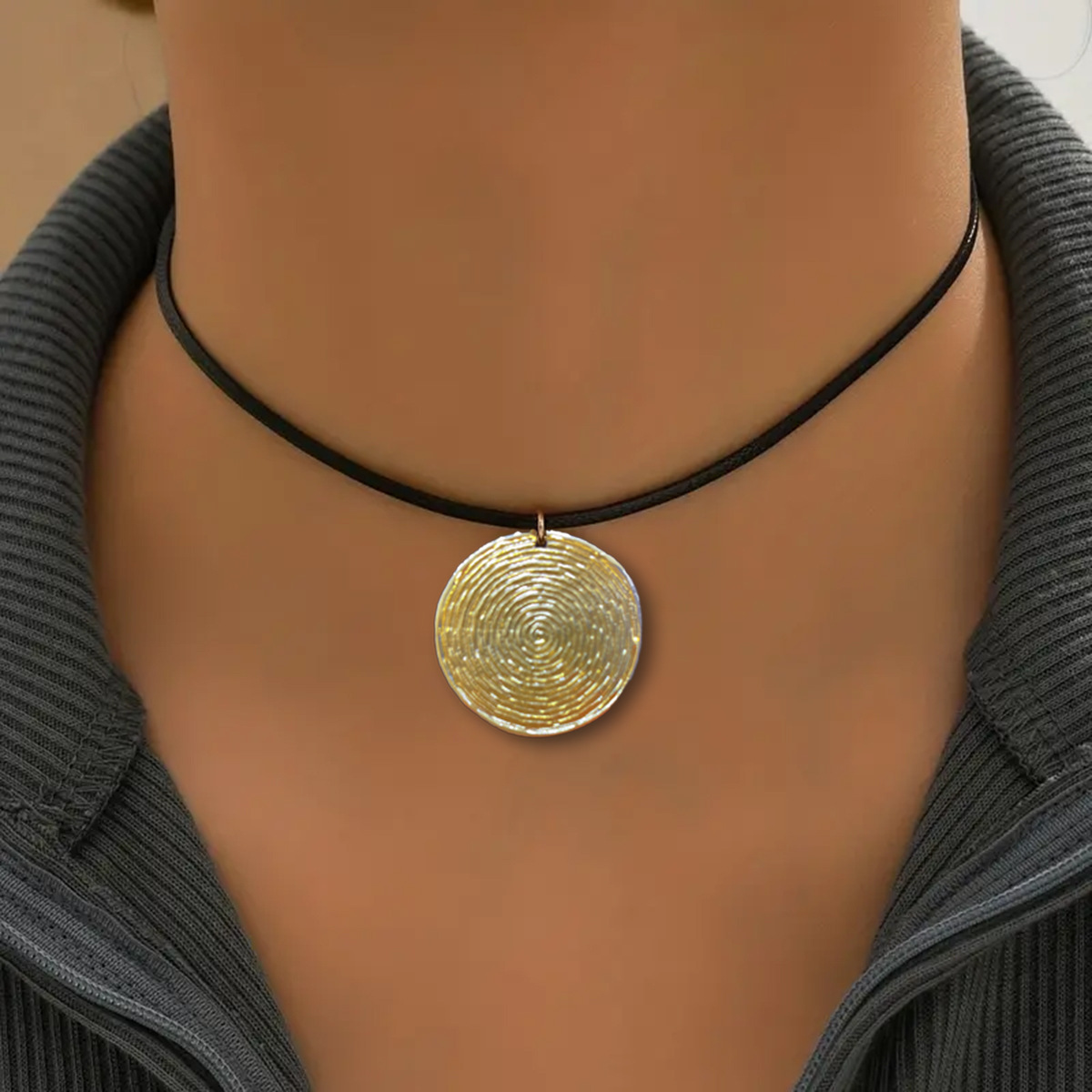 ヨーロッパ風の創意金属の丸い首のチェーンのねじのペンダントpu革の材質のチェーンの冷たい風の誇張する円形のネックレス