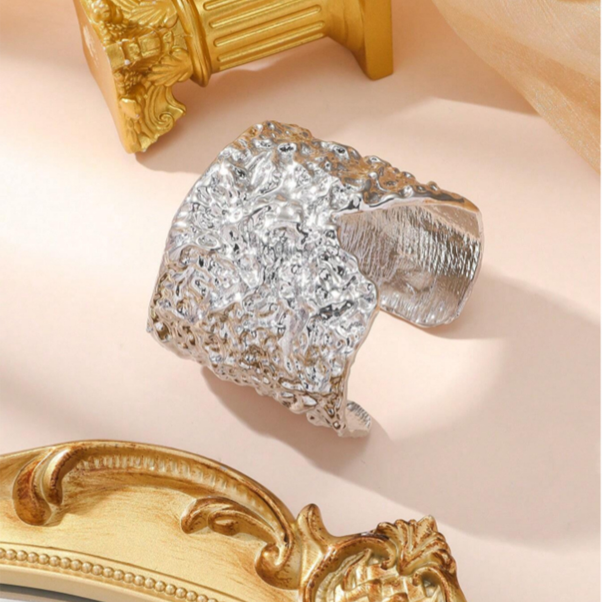 欧米の国境を越えた三層の透かし彫りのブレスレットと指輪の金色のシンプルなファッションの女性のブレスレットと指輪のセット