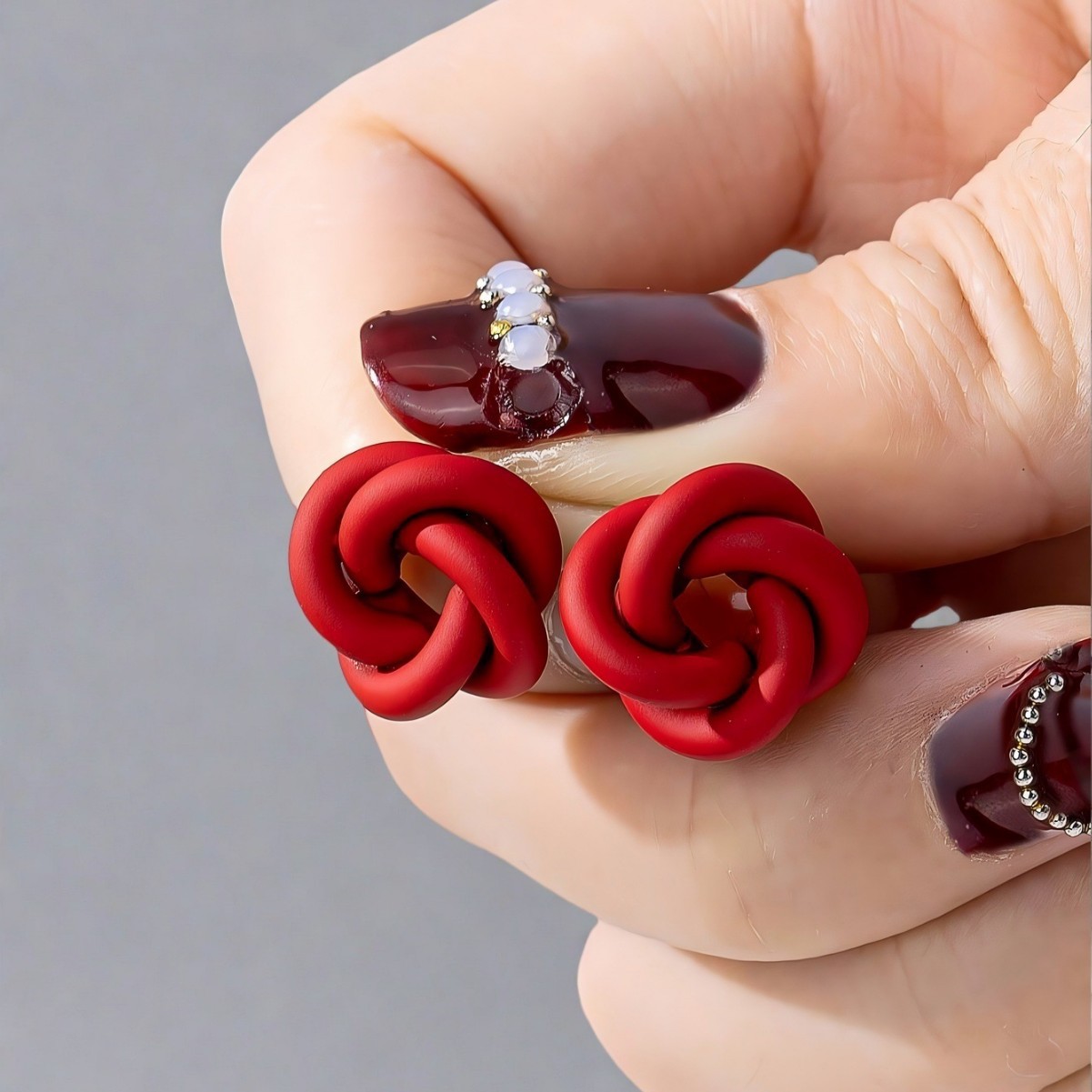 欧米の国境を越えたファッション気質はシンプルで、赤い黒いねじれピアスのレトロな幾何学的イヤリング