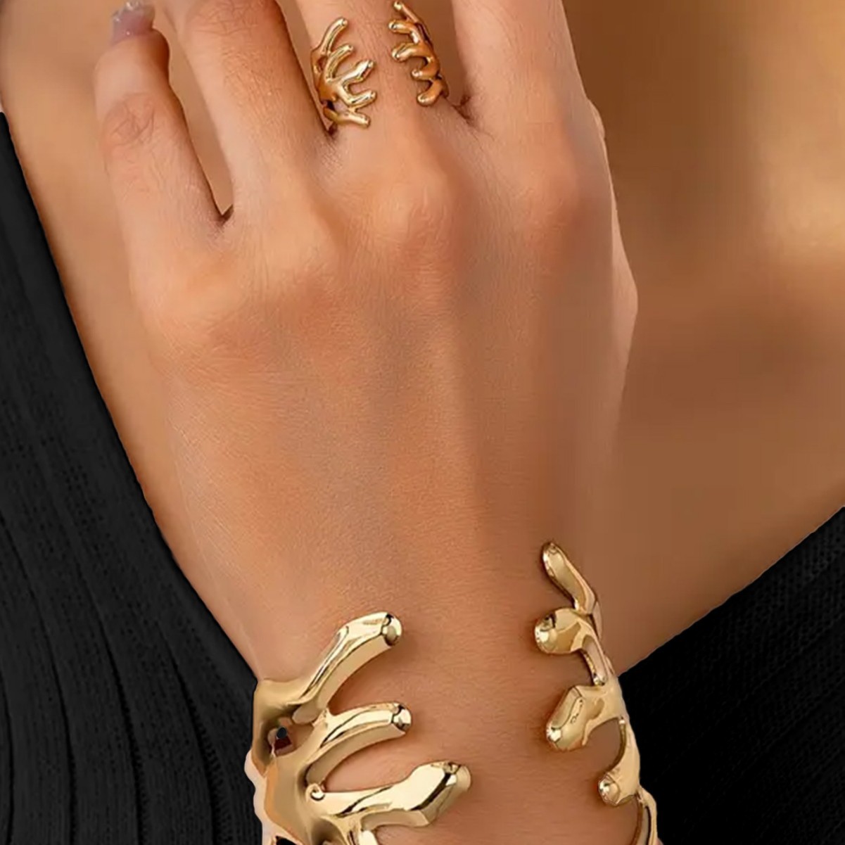 欧米のクロスボーダーの個性的なサンゴの形の幾何学的な異形のブレスレットの指輪のセットの不規則な設計感の手飾り