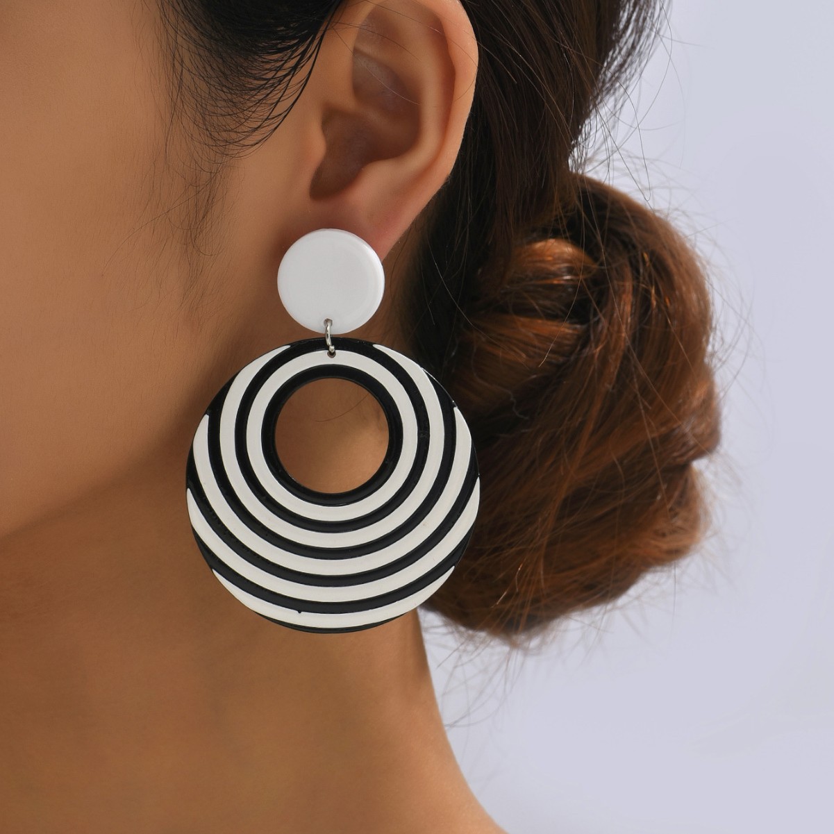 ヨーロッパとアメリカのクロスボーダーサプライ誇張イヤリング黒と白のゼブラ柄コントラストイヤリング気質ロング多用途ファッションイヤリング