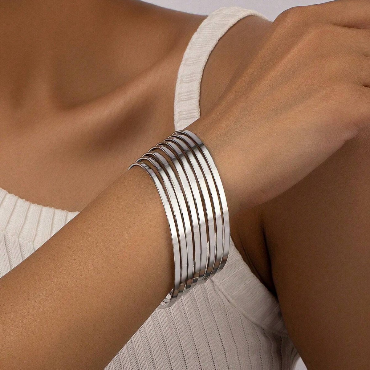欧米国境を越えたファッションシンプルな線三層スパイラルブレスレット指輪セット女性の個性的な幾何学的アクセサリー