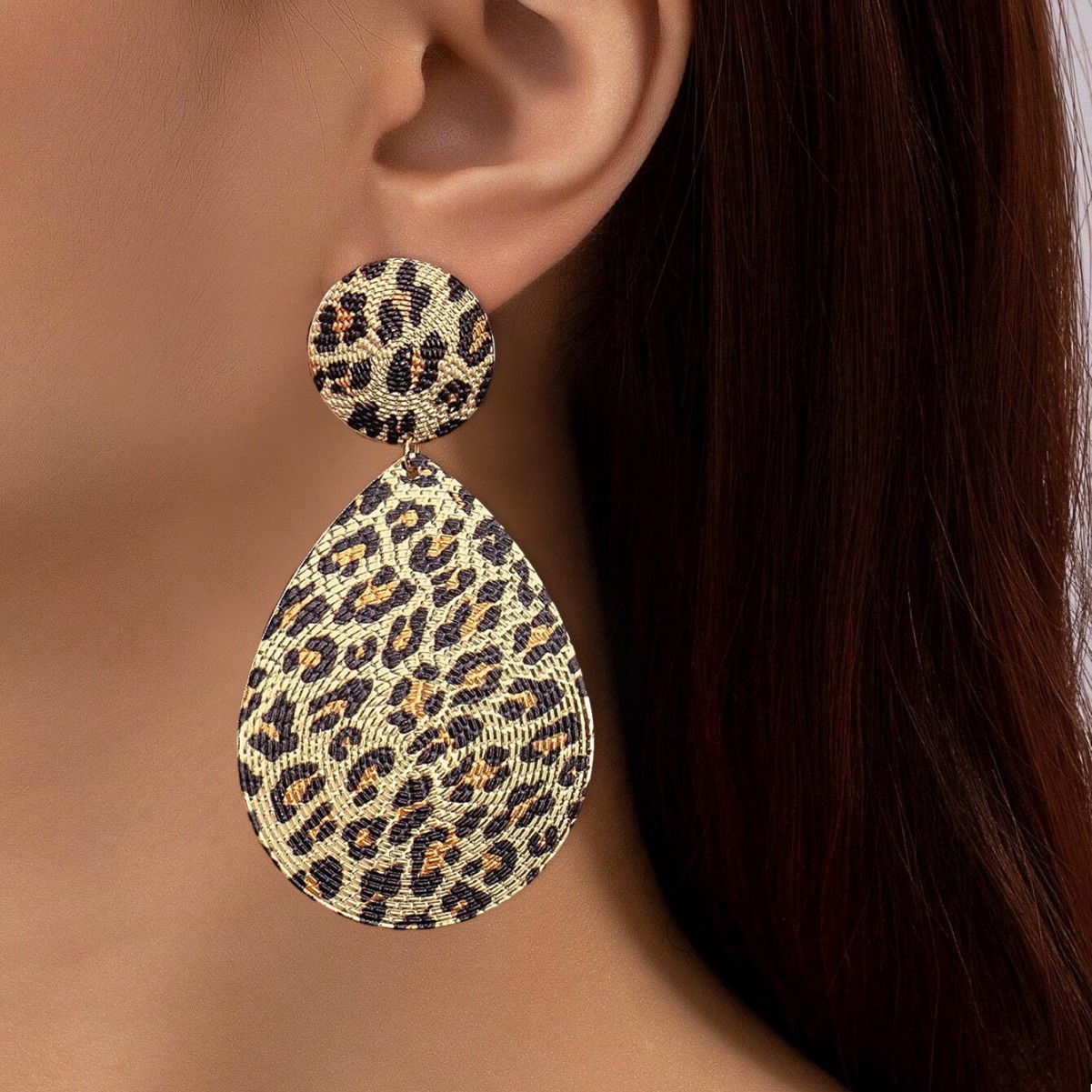 欧米の国境を越えたファッションヒョウ柄の丸いイヤリングレトロな水滴の幾何学的なイヤリング