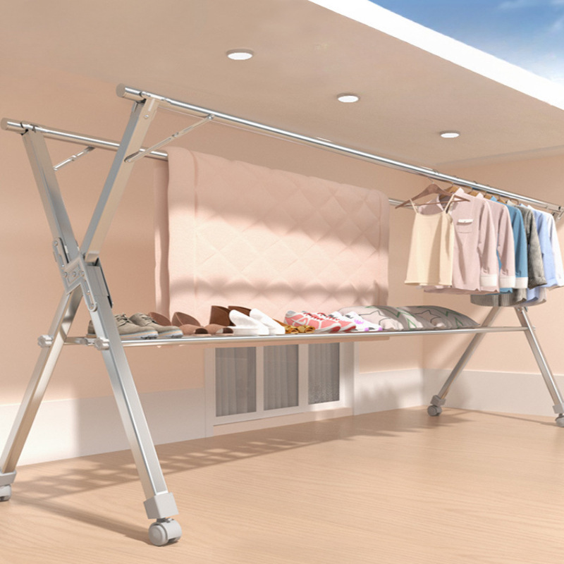 ステンレス鋼の床置き物干しラック、寝室の伸縮式バルコニー布団乾燥品、家庭用衣類乾燥ロッド、折りたたみ式衣類乾燥ラック