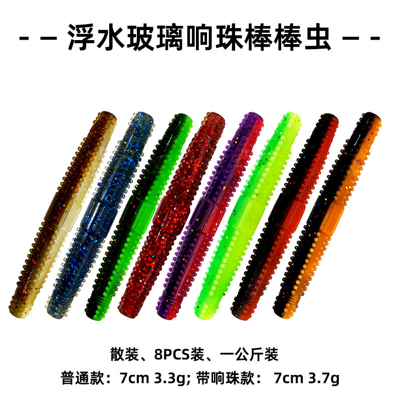 卸売り餌浮水7cm棒虫tpr路亜餌内蔵ガラス響管浮水軟虫淡水海釣り