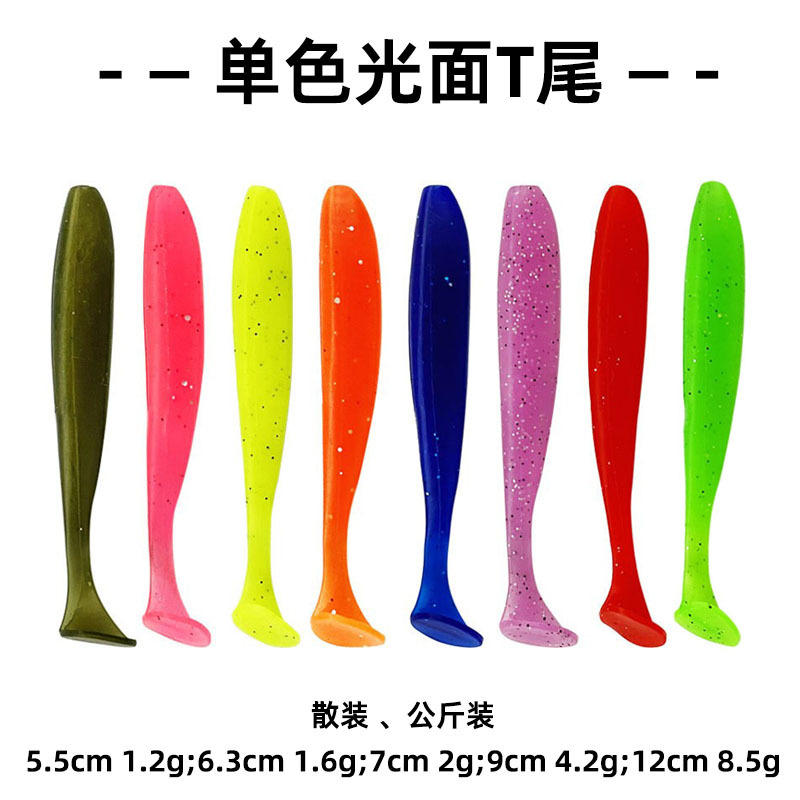 工場卸売り路亜餌単色t尾5.5cm-9cm軟餌光面t尾軟魚pvc偽餌多色