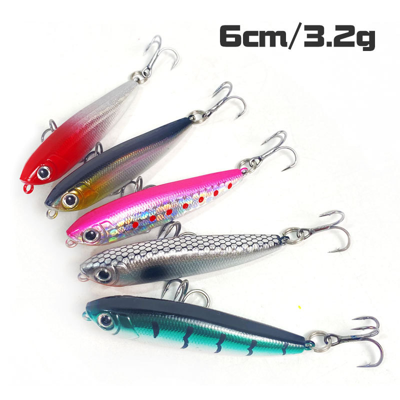 メーカー卸売り路亜硬餌6cm/3.2g利刃鉛筆黒ニッケル三本フック浮水鉛筆