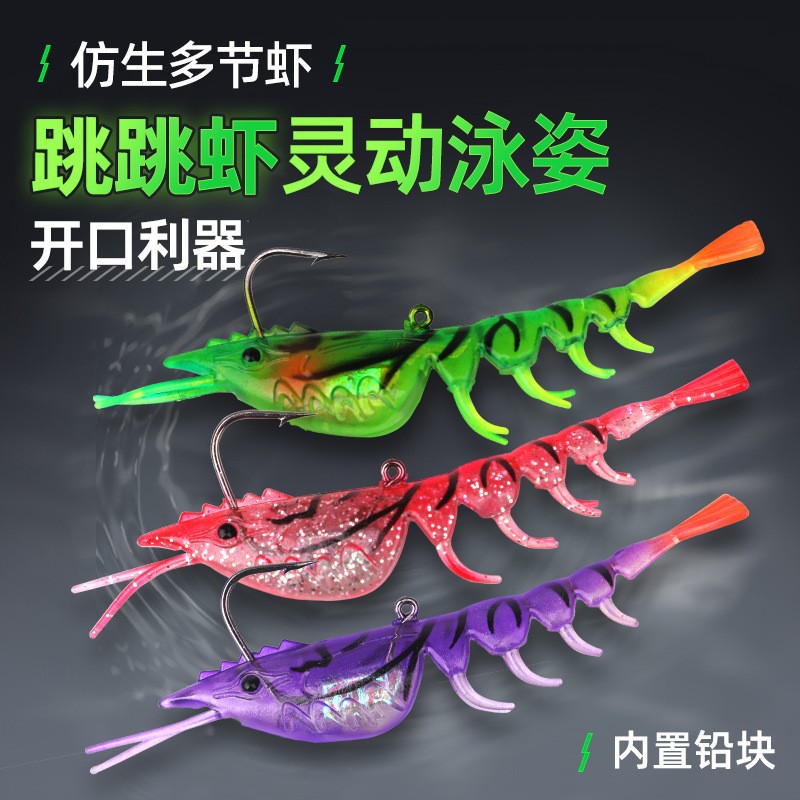 新しいルアー餌マルチセクションエビバイオニックフェイクベイト 6g13.5g ジャンピングエビ水中ソフトベイトシングルフック鉛釣り餌