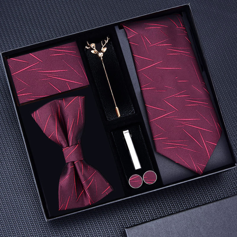 ドレス8点セットのワインレッド新郎結婚ネクタイネクタイのスカーフ男性ビジネス正装韓国版ジッパー無料