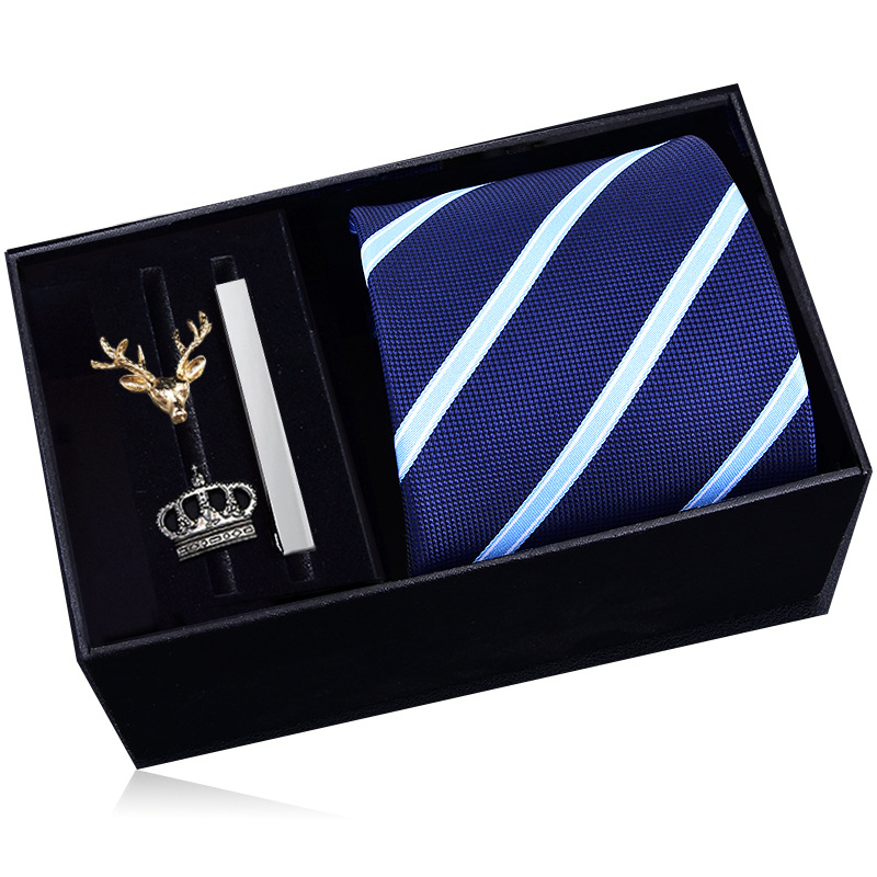 ギフトボックス】メンズネクタイのスカーフのカフスのネクタイのクリップ5点セットの正装ビジネス8cmブルーの結婚