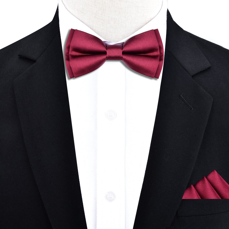 男性用ポケット付きタオルセット結婚結婚式新郎連れ合いスーツのワインレッド蝶結び