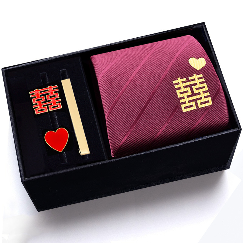 ギフトボックスワインレッド結婚ネクタイストライプ刺繍結婚祝い新郎正装アクセサリー個性的レーザーロゴ