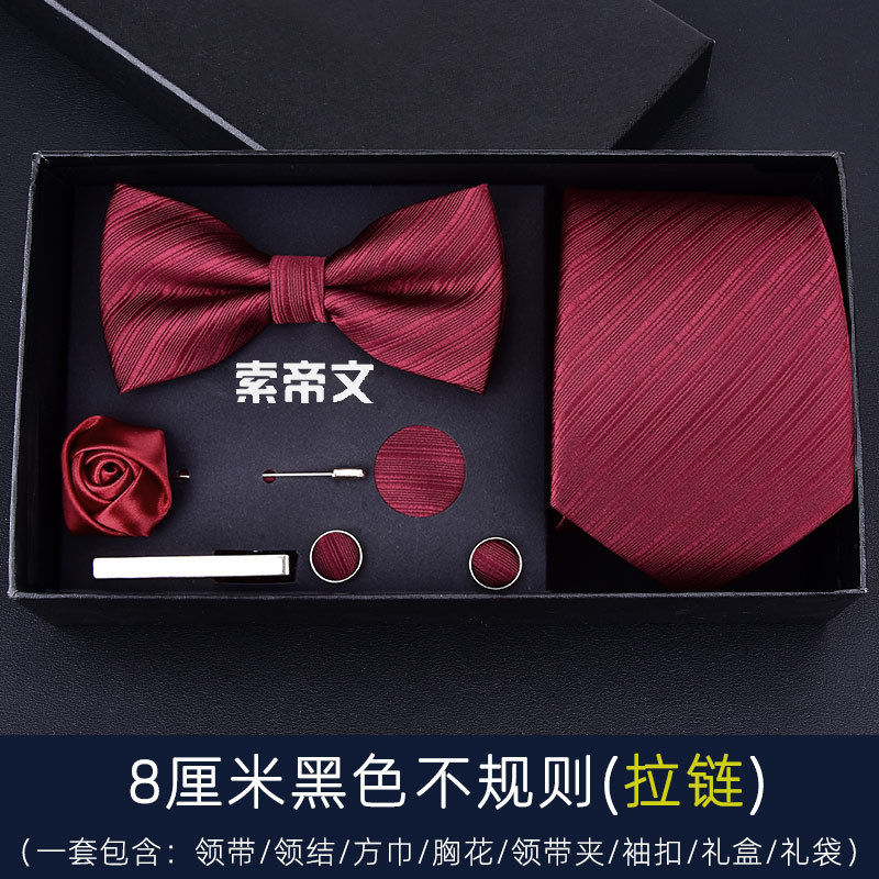 【ギフトボックス】ジッパーネクタイ五点セットメンズビジネス正装ブラック8cm新郎结婚赤