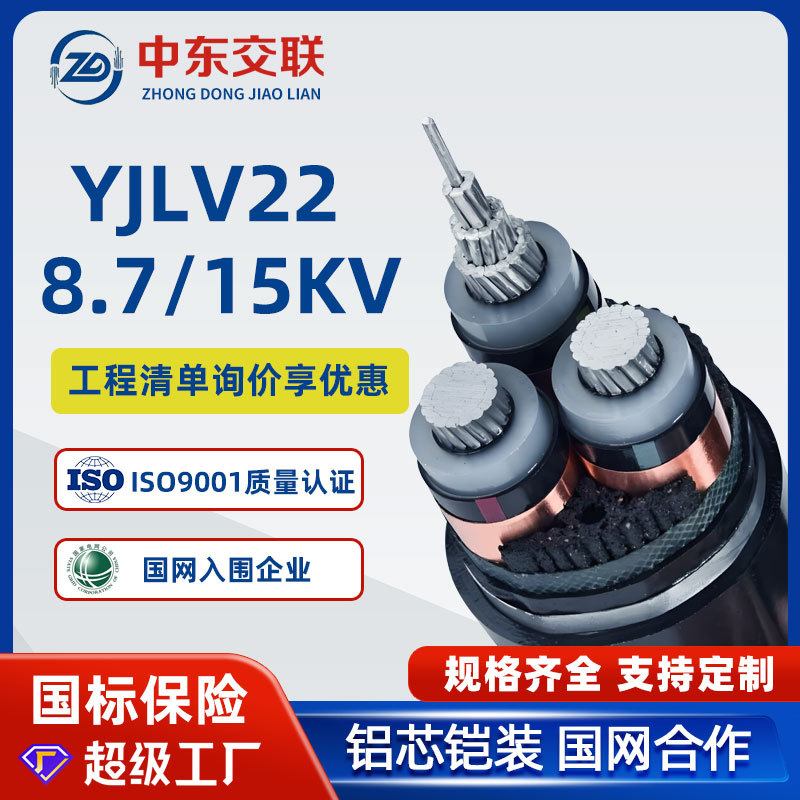 国家標準銅コア高圧装甲 YJV22 8.7/15KV 1 芯 3 芯地下電力ケーブル高圧ケーブル