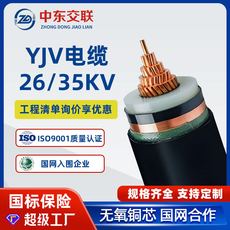 YJV 銅芯電線およびケーブル 1 芯 * 50/70/95/120/150 平方 26/35KV 単一銅芯高圧ケーブル