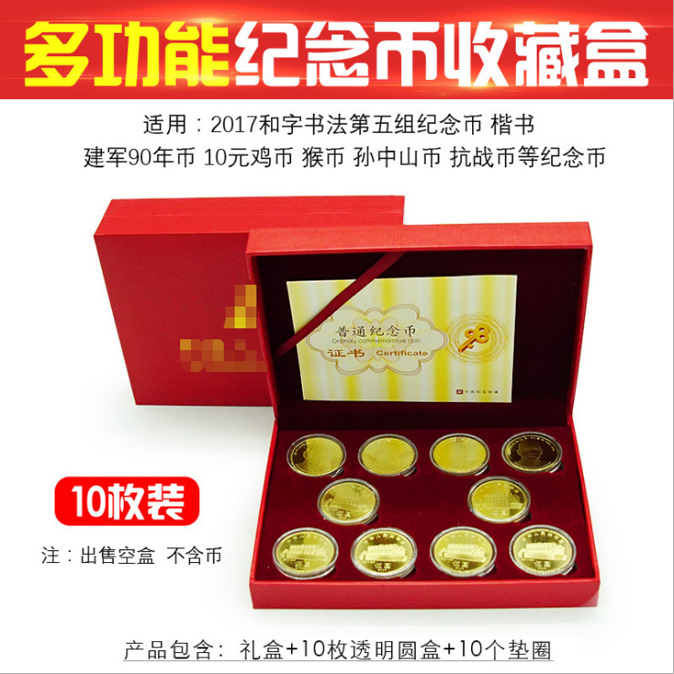 通用十枚の大方箱一元五元十元記念貨幣のコイン保護箱建軍と字生肖