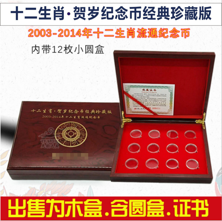 汎用十二生肖木箱12枚入一輪生肖セット箱12枚記念貨幣保護収蔵箱