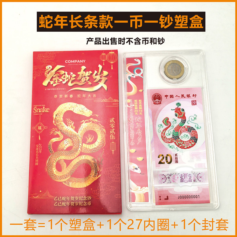 2025年蛇年長条項1円1札プラスチックケース1枚27mm記念コイン1枚蛇札収納ケース透明ケース