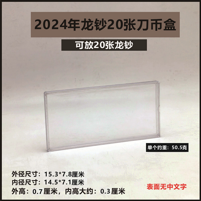 2024年龍札記念札一枚箱20枚透明角箱刀券箱人民元保護箱