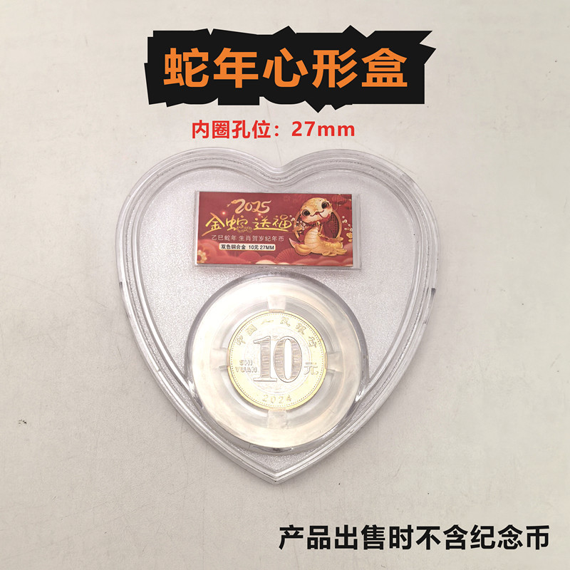 2025年蛇ハート型記念貨幣透明箱二輪生肖貨幣記念貨幣収集箱27mm保護箱