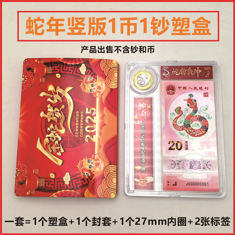 2025年蛇年1札1札プラスチック箱1枚27mm記念札1枚蛇札収集箱展示透明箱
