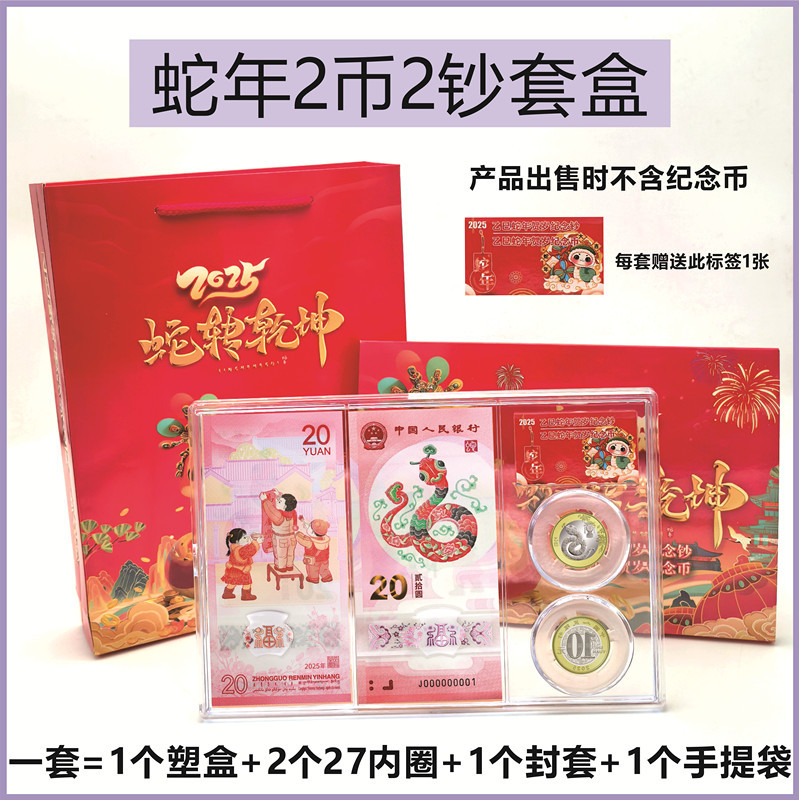 2025年蛇年2券1札ギフトボックス2枚27mm記念コイン1枚蛇札収納ボックス展示箱セット