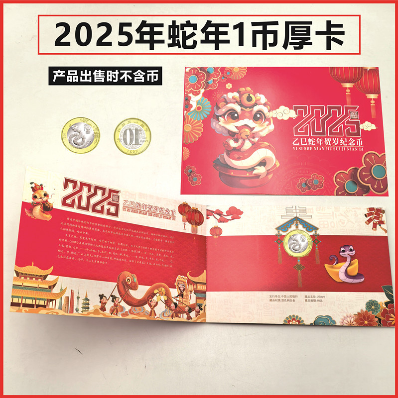 2025年蛇年記念貨幣亮カード27mm収集カードPS透明カード角箱カラーカード生肖厚カード