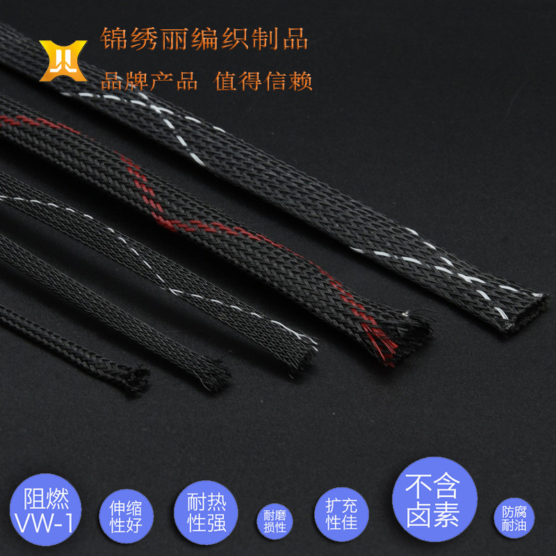 難燃耐摩耗性編組網管蛇皮網カバーナイロンpet網管難燃線伸縮網管