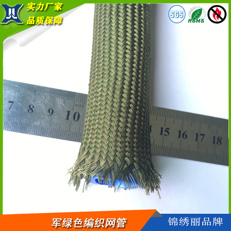 2-100mm軍の緑色の編み物ネット管のナイロンネット管の難燃耐磨耗ネット管の暗号化ネット管を供給します。