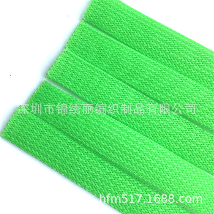 メーカーは14mm軍のグリーン編み網管ポリエステル網管の耐高温電線保護網管を供給しています。