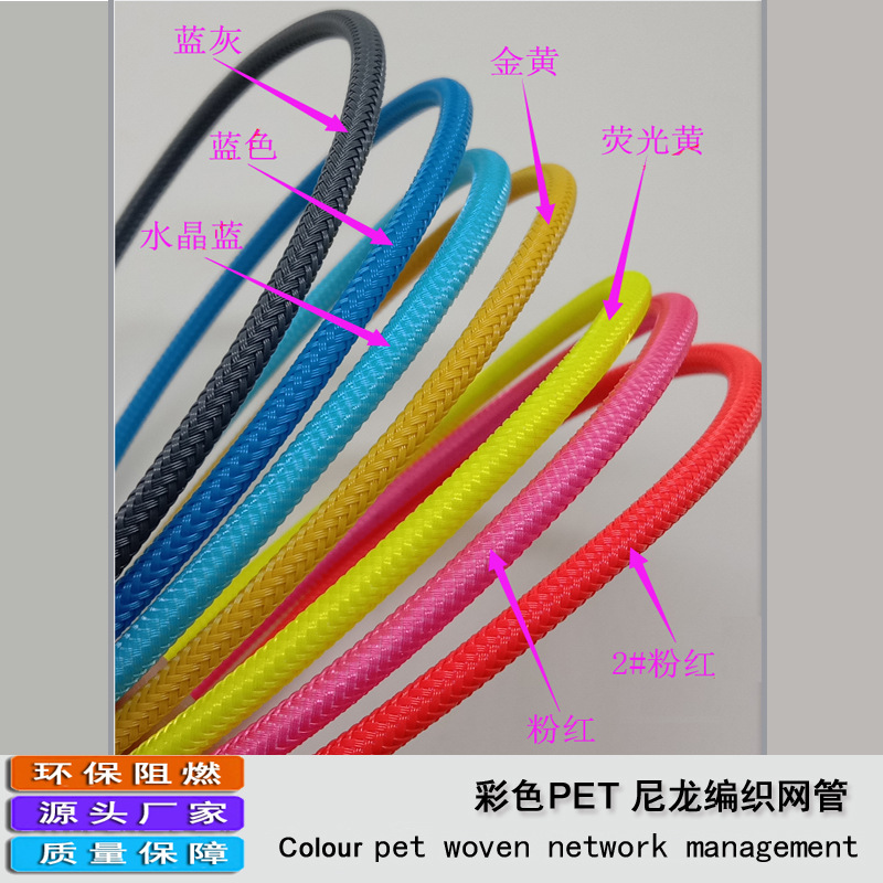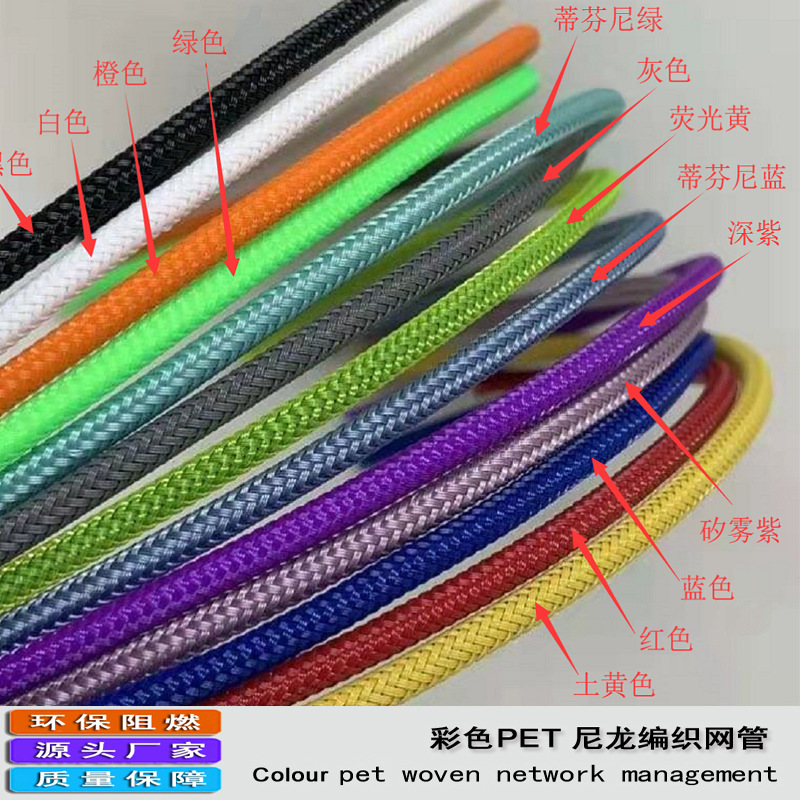 メーカー卸売りカラーナイロン編み網管難燃耐摩耗性pet伸縮網管平糸蛇皮網管